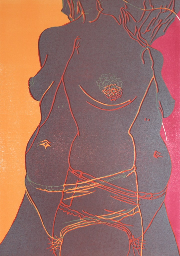 auf der Einladungskarte wieder. Er manifestiert sich. Farbflächen formen sich zu Körper und
