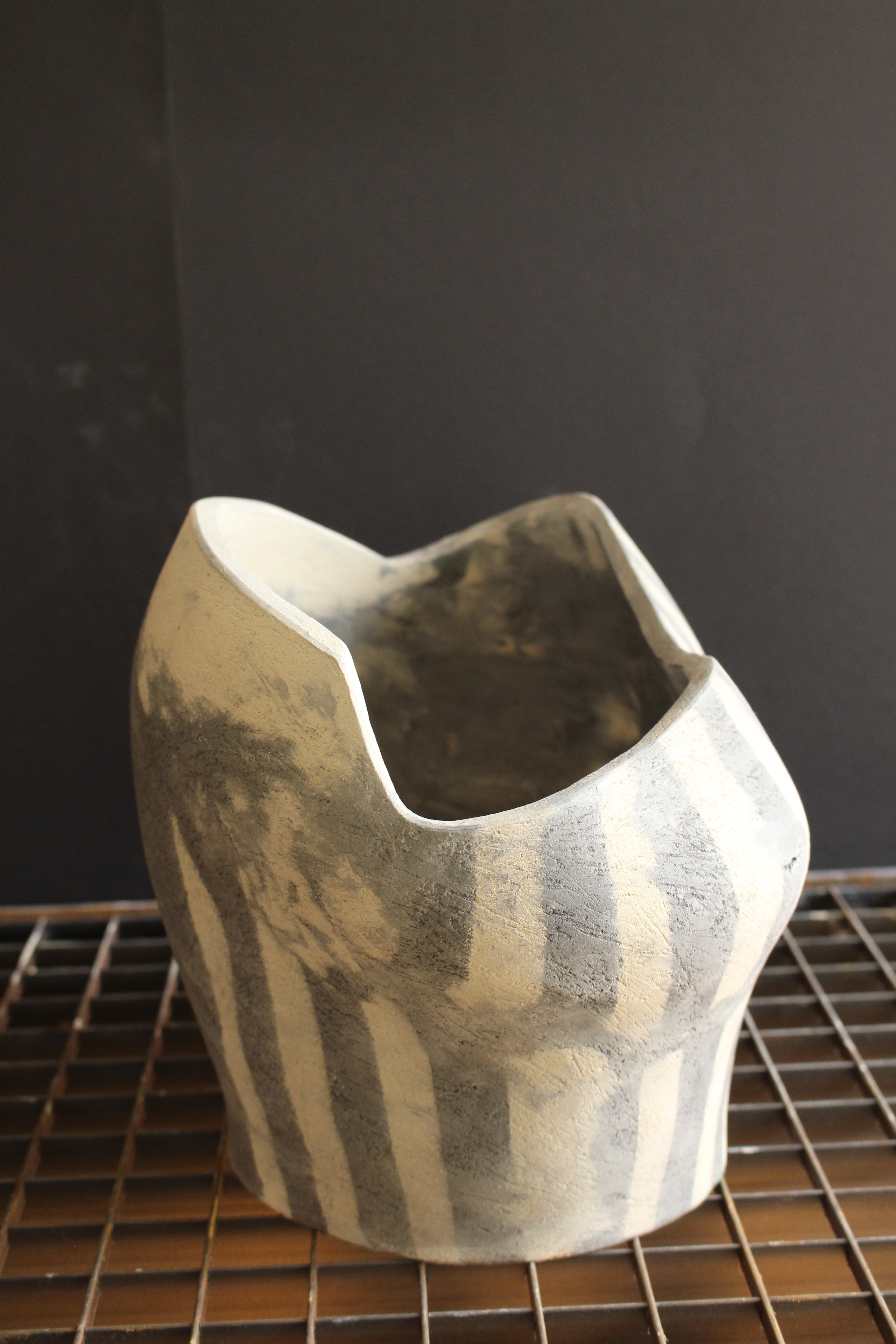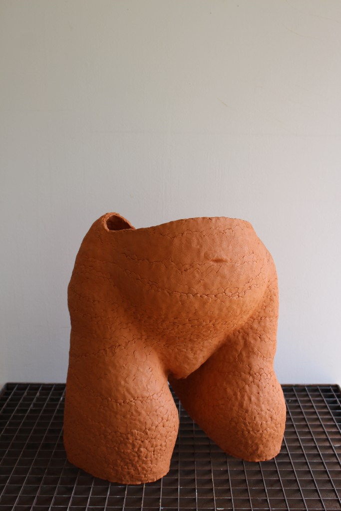 angerührtem Ton intuitiv entstehen und wieder zu Staub zerfallen oder Plastiken, die gebrannt